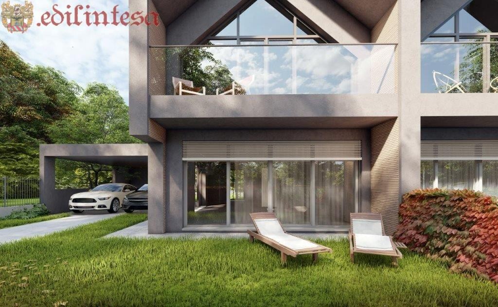 La parte esterna è corredata da giardino di proprietà con quadrupla esposizione e quattro posti auto.