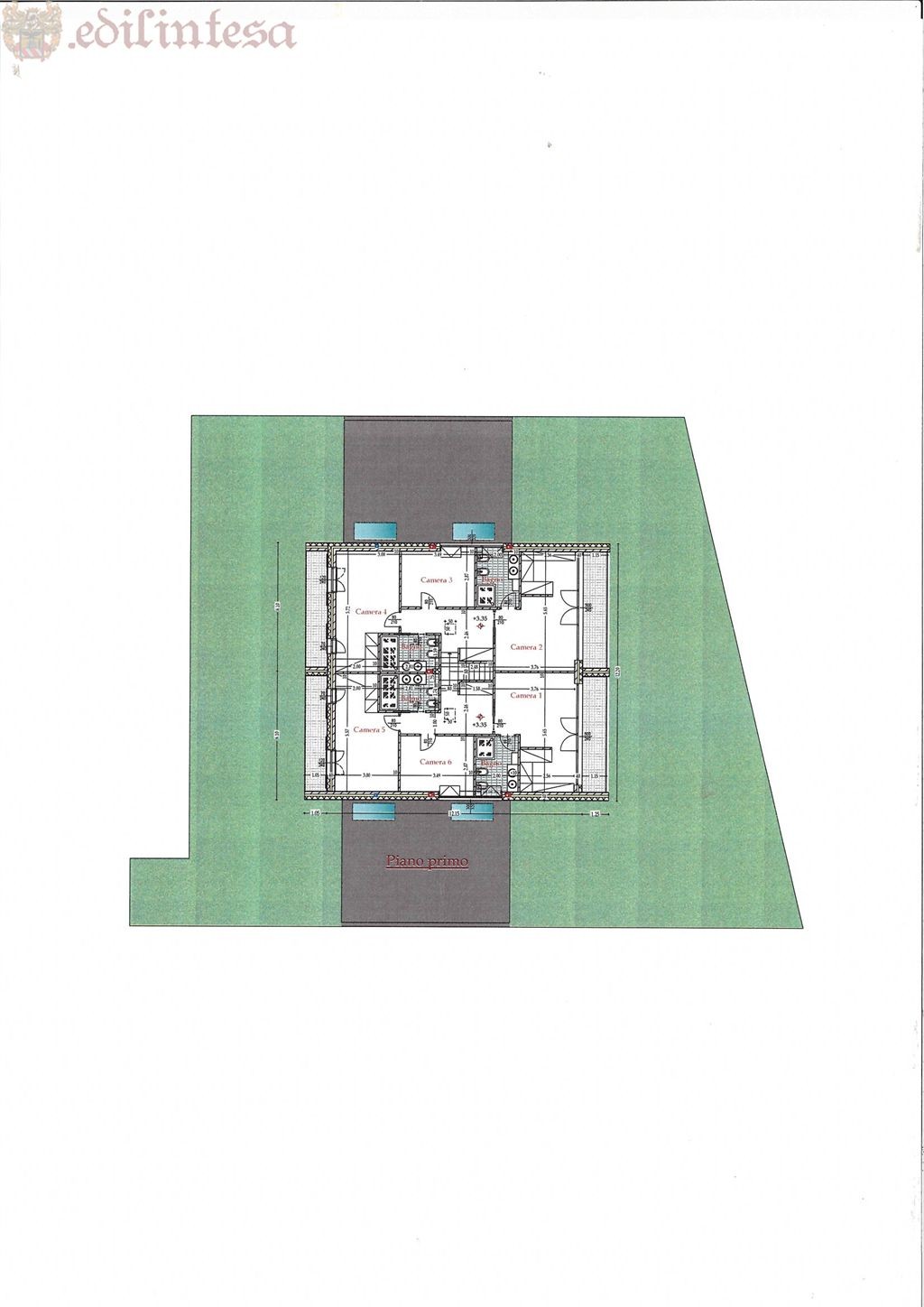 Al piano primo ci sono sei camere da letto (di cui due progettate come camere matrimoniali con cabina armadio, bagno privato e terrazzo) e quattro servizi, sono presenti due ampi balconi e due terrazzi